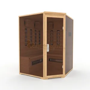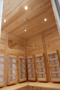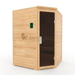Это специально оборудованная кедровая кабина для прогрева тела человека сухим теплом. Воздух в таких парных не нагревается. Инфракрасные лучи воздействуют на тело, равномерно прогревая мышцы, суставы и органы. Керамические излучатели похожи на лампы, имеют высокую температуру нагрева, поэтому защищены противоожоговыми решетками. Тело человека в таких саунах нагревается интенсивнее. Работает кабина за счет электричества. Установка сауны в угол, позволяет рационально использовать пространство помещения. Подходит как для домашнего использования, так и для коммерции.