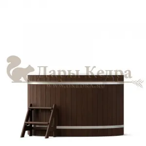 Это купель с внутренней овальной чашей, которая изготовлена из современного прочного и термоустойчивого материала (композита). Форма чаши обеспечивает комфортную посадку внутри изделия. Для удобного использования купель оснащена приставной лестницей. Обручи из нержавеющей стали декорируют купель с композитом и равномерно распределяют нагрузку во время процедур.