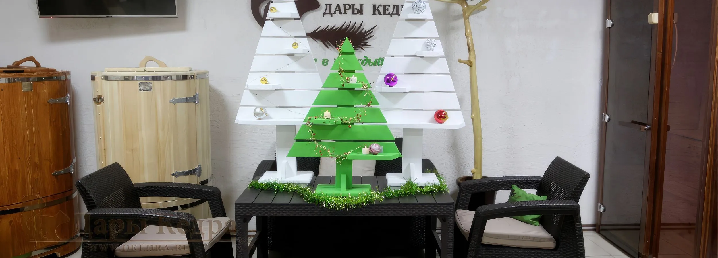 Во-первых, рекомендуем добавить деревянного декора в интерьер вашего дома или квартиры. Это могут быть незамысловатые деревянные елочкиящички, полочки, ключницы, рамы, выполненные вручную мастерами-столярами компании «Дары Кедра». Особенно интересно будет смотреться несложный декор в виде резьбы. Символ года отдает предпочтение вещам, сделанным своими руками в кругу семьи, поэтому можно устроить несложный мастер-класс по украшению деревянной елочки различными аксессуарами. Это будет интересно, познавательно и точно запомнится детям на всю жизнь! Предлагаем проявить фантазию, наполнить атмосферу дома семейным теплом, а после - поделиться с нами вашими результатами работ!