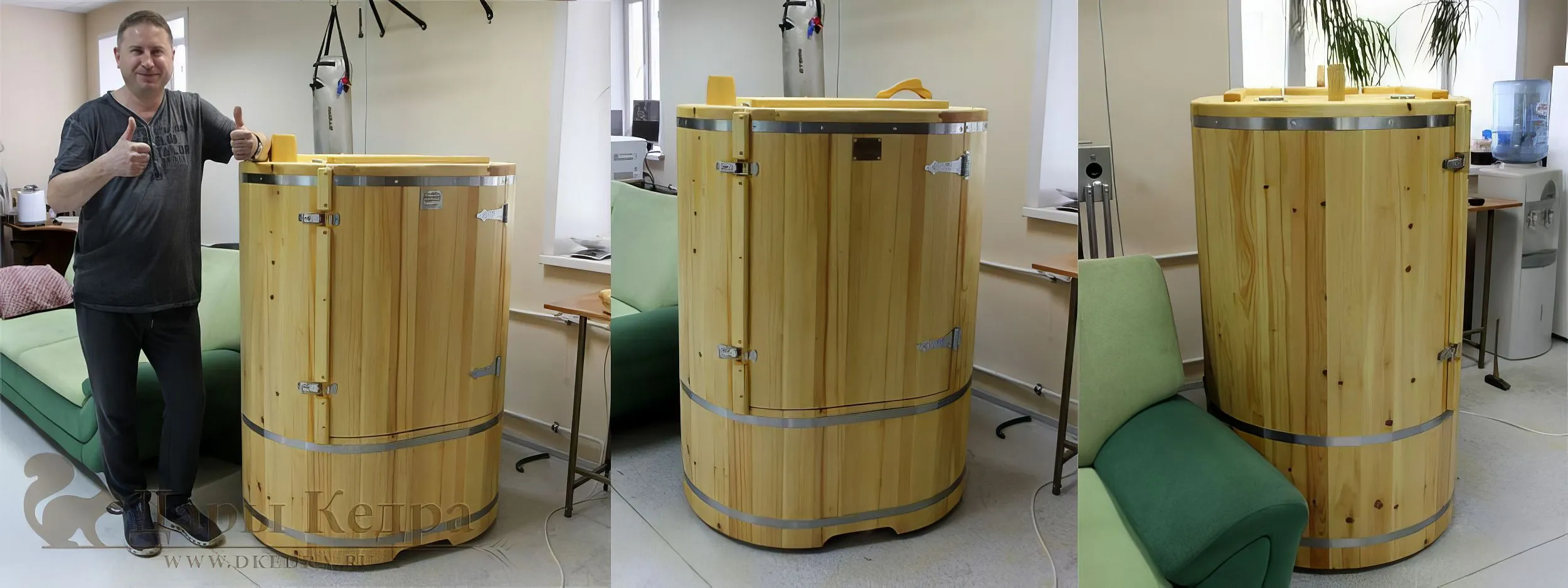 Кедровая бочка (фитобочка) круглая со скосом «Двухрежимная Профессиональная»